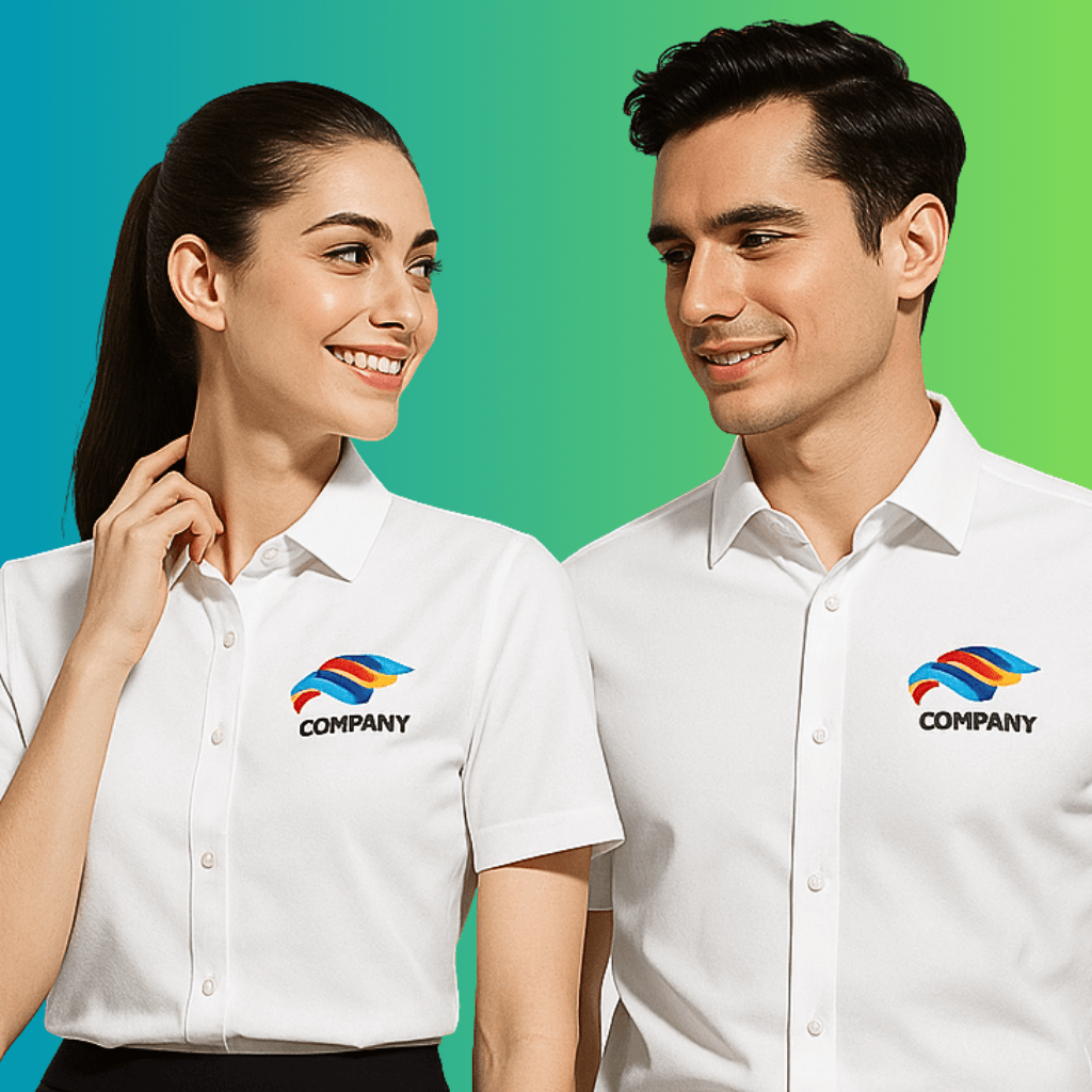 Embroidered logo/artwork feature raised, stitched designs made from colored threads. The texture is slightly firm and dimensional, giving a premium, long-lasting finish—perfect for logos on polos, jackets, or uniforms.